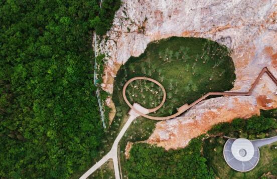 位于湯山國家旅游度假區(qū)內(nèi)湯山山體南側,是一座廢棄的采石場礦坑,宕口遠看傷痕累累,走進卻氣勢恢宏——植物已經(jīng)悄然的從破碎的石縫中慢慢長出,與冷峻的石壁搭配成漂亮的肌理;巨大的采石場的尺度讓人覺得不可觸、不可及,但是熱血沸騰。